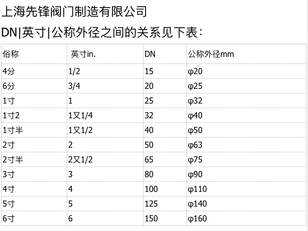 MoreDN|英寸|公稱外徑對應(yīng)表
